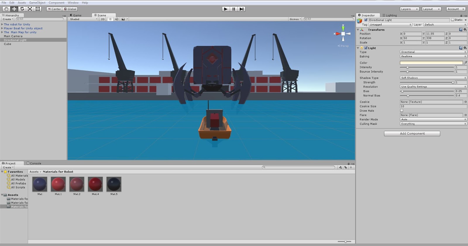 In this Unit we were basically told to get familiar with what a game engine is and how to use so we all made a small game that involved a 2D and 3D part to it. For my game I decided to create a exciting and challenging 3rd person boat shooter game where the player gets to fight a giant robot boss, so basically it's a mini Boss fight of some sort. and the 2D aspect is that whenever you get hit by the robot's powerful lasers you will need to repair the boat in a 2D puzzle mini game.